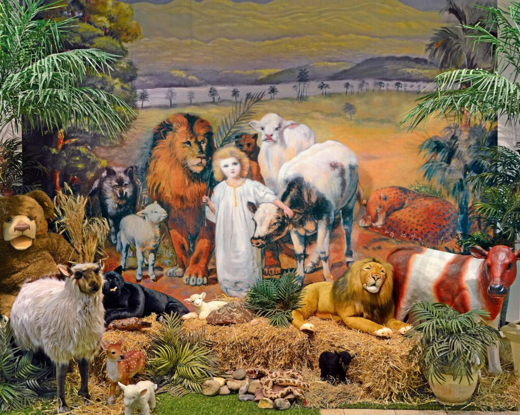 „Волкот ќе живее со јагнето, пантерот со јарето. Телото и лавицата ќе се пријатели; тие ќе лежат заедно и ќе се грижат за своите млади.